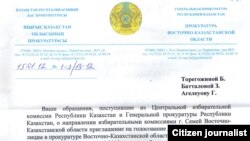 13 января 2012 года на сайте радио "Азаттык" было опубликованы приглашения из города Семей. /content/article/24450085.html    Коалицией общественного наблюдения "Сайлау" был сделан запрос с просьбой проверки данного факта. Сегодня нами получен ответ, который мы предлагаем вашему вниманию...