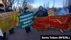 Одна из протестующих Кенжеш Сембаева заявила, что заранее уведомила акимат о предстоящей акции протеста, однако исполнительный орган не согласовал мероприятие.