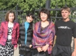 Слева направо: Алма Курманбаева, свидетель по уголовному делу против Алимы Абдировой, ее дочь Нургуль, Алима Абдирова и воспитанник Жайсанской школы-интерната Антон Петров. Актобе, 27 августа 2011 года.
