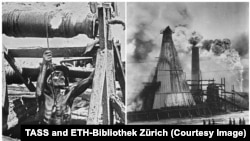 Эта фотография выброса нефти недалеко от Баку – один из нескольких снимков, хранящихся в библиотеке ETH в Цюрихе, на которых запечатлен нефтяной бум на Кавказе в начале 1900-х годов.