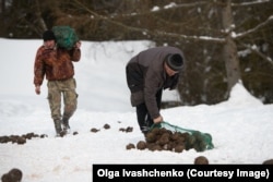 Фотограф Ольга Иващенко присоединилась к работникам лесного хозяйства, которые помогают украинским диким зубрам выжить в суровые зимы в Карпатах.