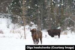 Иващенко говорит, что этот прирост численности диких зубров в Украине во многом происходит «благодаря людям, которые ухаживают за ними» в национальных парках страны.