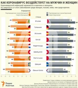 Уровень смертности среди заразившихся COVID-19 женщин ниже, чем среди инфицированных мужчин.