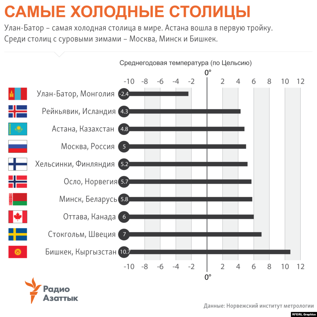 Азаттык представляет рейтинг мировых столиц с самыми суровыми зимами.