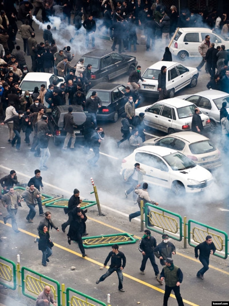 Иранские полицейские стреляют во время подавления антиправительственного протеста в Тегеране. 27 декабря 2009 года.