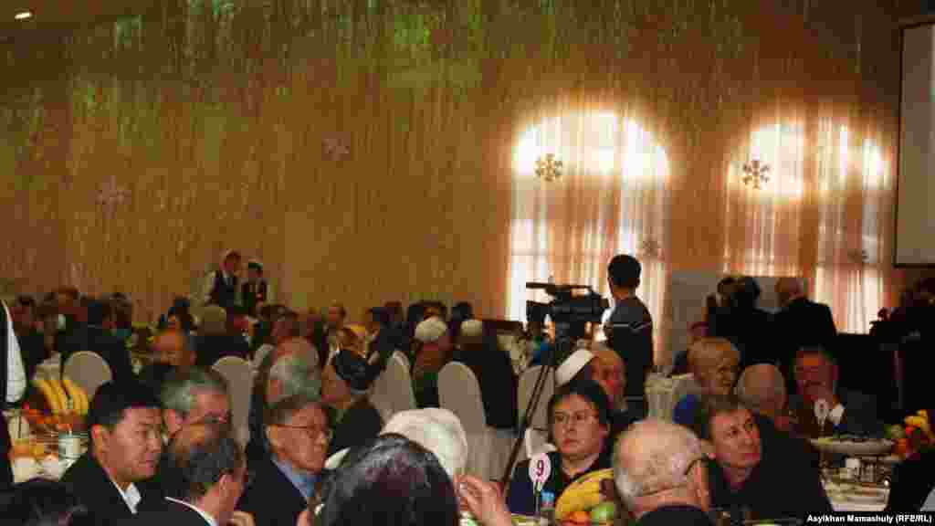 В центре – Зейнеп Ахметова, невестка Бауыржана Момышулы. Справа – Макпал Жунусова, вдова Заманбека Нуркадилова. Алматы, 17 января 2014 года.