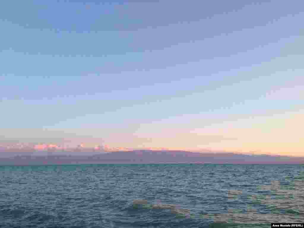 Чудесный вид заката на Алаколе. Вдали виднеется Аралтобе.