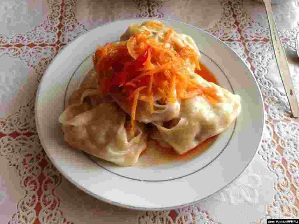 Женщина, занятая приготовлением пищи, – Сажида. Работает в райцентре Урджаре в школьной столовой. В летний период подрабатывает здесь. Готовит очень вкусно. Так как сейчас очень много людей, страдающих от аллергии, старается ничего лишнего в еду не добавлять.