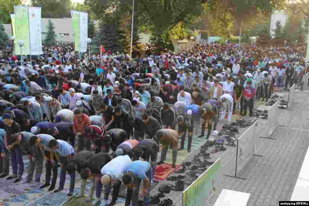 На молитву в Алматы народ собирался с утра пораньше. Недавно президент Казахстана Нурсултан Назарбаев высказался, что мусульманкам в стране не пристало одеваться во все черное. В центральной мечети Алматы сегодня можно было увидеть много женщин, одетых в светлые тона. Назарбаев также заявил, что нельзя принимать такое, когда мужчины-мусульмане отращивают слишком большие бороды и носят брюки с короткими штанинами.
