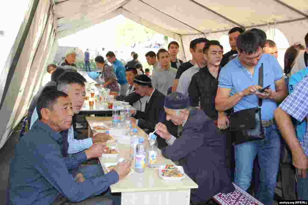 Собравшихся на праздничную молитву угощали блюдами национальной кухни.