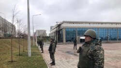 Силовики охраняют городской акимат в Шымкенте. 7 января 2022 года. Фото: Дилара Иса.