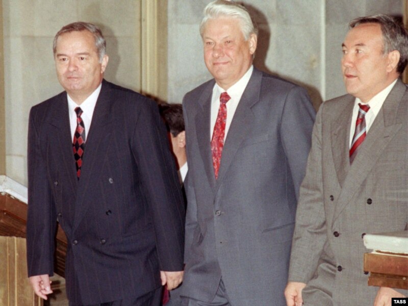 Ислам Каримов, Борис Ельцин, Нурсултан Назарбаев на встрече глав государств СНГ в Ташкенте, 1992 год.