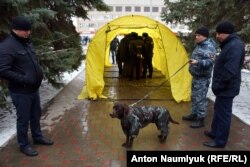 Остальные члены украинской делегации на автомобиле Ростовского консульства приехали к зданию суда, где уже рано утром выстроилась очередь из журналистов, желавших попасть на процесс. По данным пресс-службы суда, на оглашение приговора аккредитовалось более ста СМИ. Для их проверки перед судом поставили палатку, где полицейские с собаками осматривали вещи, камеры и штативы. Еще раз журналистов проверяли уже на входе судебные приставы.