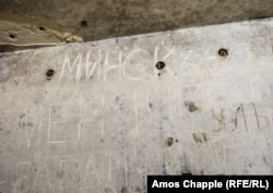 Большинство граффити — это просто названия городов, откуда были родом солдаты. На фотографии выше солдат написал «Киев» на русском языке. Название столицы в Украине пишут «Киiв».