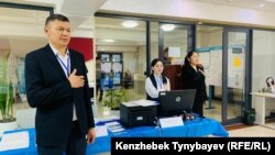 Корреспондент Азаттыка в Алматы побывал на участке № 350. Перед началом голосования прозвучал гимн Казахстана.