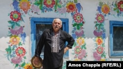 Художник поддерживает древнюю украинскую традицию росписи, украшая окна домовладения цветами и ягодами в петриковском стиле.