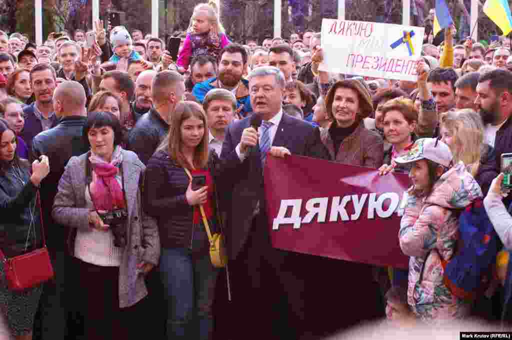Петр Порошенко поблагодарил своих сторонников за поддержку на выборах и пообещал, что его партия победит на выборах в парламент осенью 2019 года, а сам он вернется на Банковую в качестве президента страны.