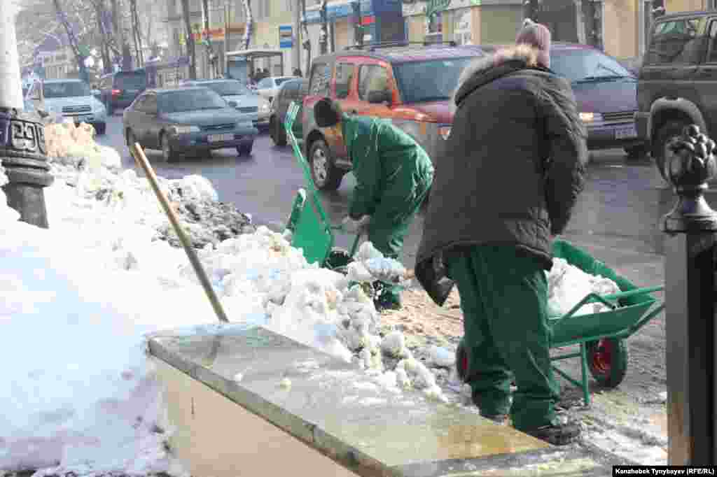 Снег в Алматы выпал пять дней назад, но некоторые улицы и тротуары еще завалены снегом. 5 декабря 2012 года.