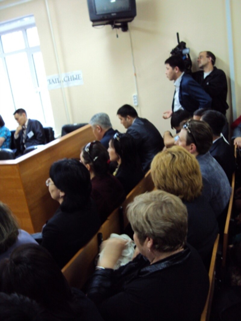 В зале суда по делу бывшего министра здравоохранения Жаксылыка Доскалиева. Астана, 19 мая 2011 года.